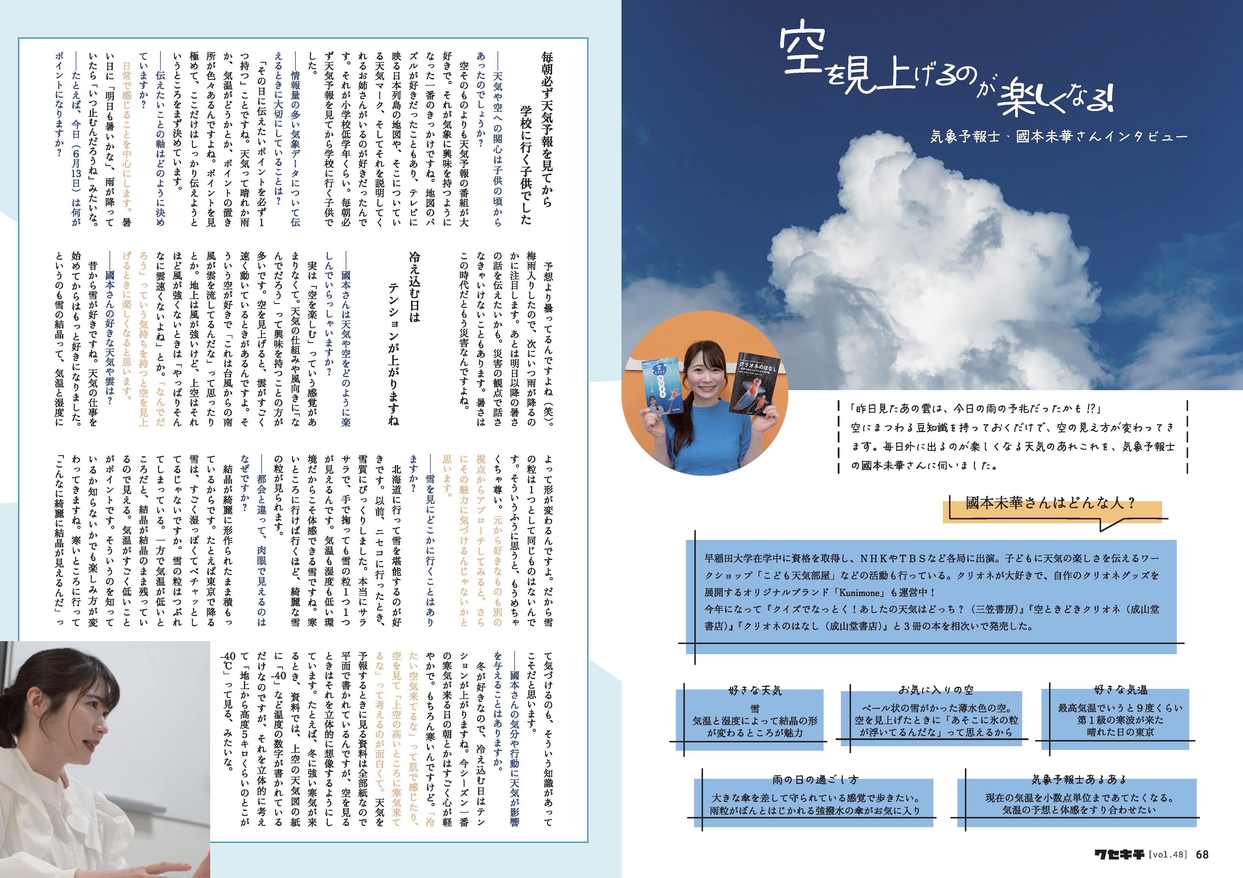 - 15 空を見上げるのが楽しくなる! 気象予報士・國本未華さんインタビュー